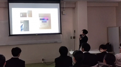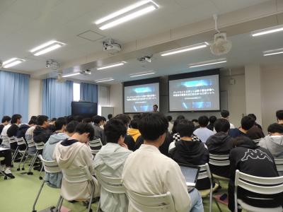 先週に引き続き、今回は、株式会社ユードムの森社長、直井様、村上様、梅澤様にご登壇いただきました。株式会社ユードムは、水戸に本社を置く、受託開発と自社開発を行っている企業であり、AIに関する技術的支援を通して本校の教育活動にも協力いただいている企業になります。