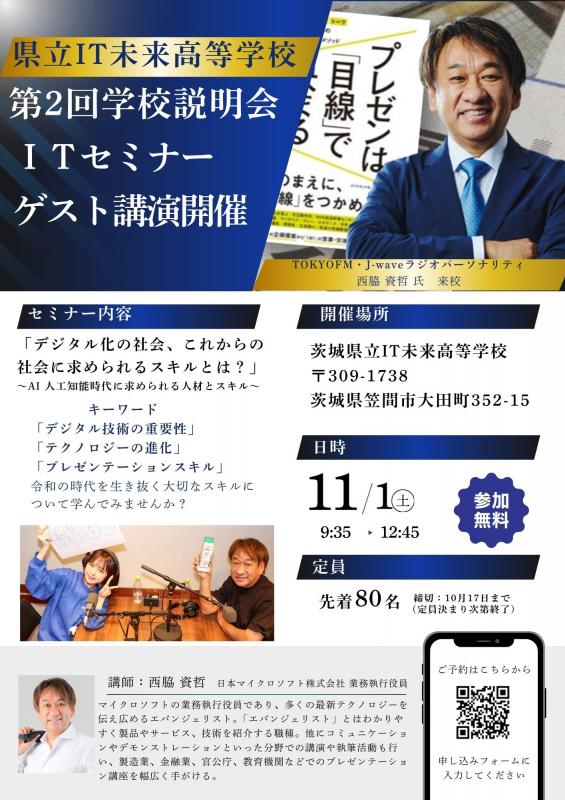 茨城県立IT未来高等学校の特色選抜の実施についてについて掲載しました。(10月1日)