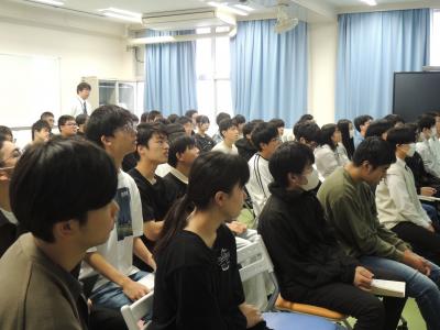 他の団体様の視察では、専門教科の授業(特に実習等)や共通教科の授業の様子を主に見ていただくのですが、今回は2年次が2コマ連測で合同LHRを実施しており、普段の生徒の様子をありのままに見ていただきました。