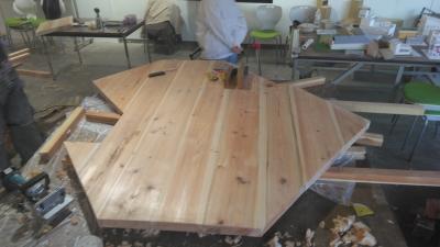 今後は、天板をレーザー加工機を活用してアクリル板で装飾する作業が残っています。