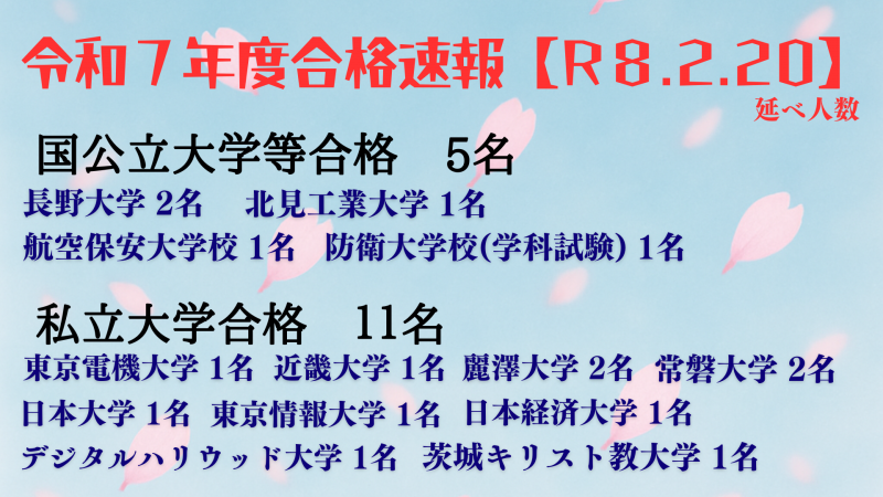 今年度も残りわずかです。みんなで協力して合格を目指そう!