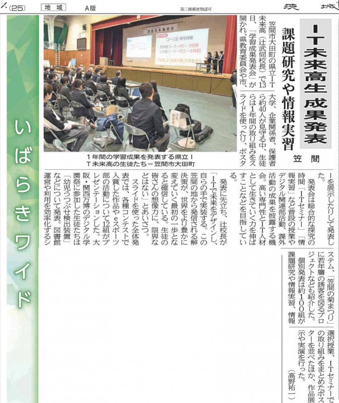 2026年2月18日付の茨城新聞にて、本校の学習成果発表会の様子が掲載されました。